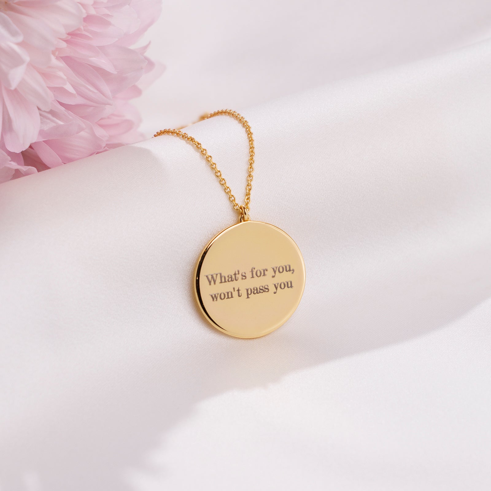 Gold Coin Necklace. Crafted in premium 18k gold plating, this beautiful necklace features a classic coin pendant that can now be custom engraved with initials, a special date, or a short message. 💜